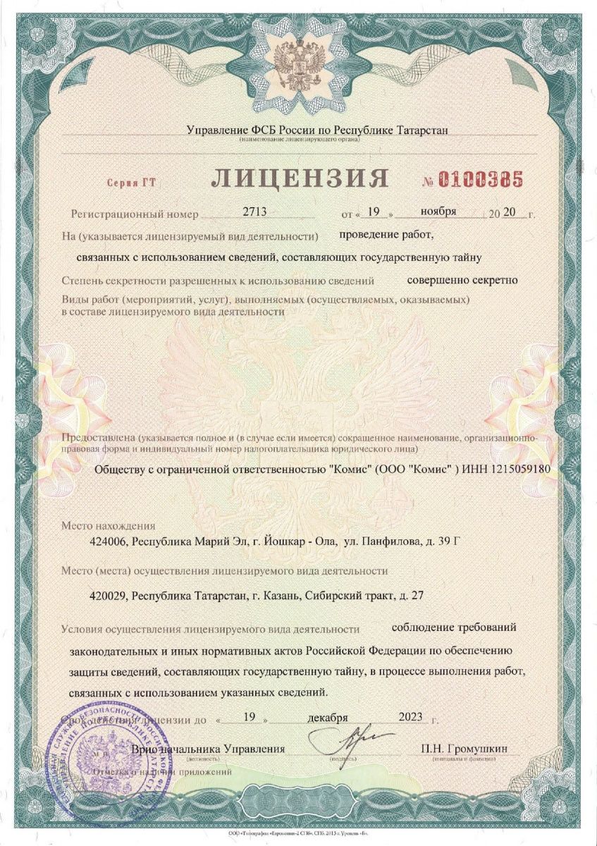 Направления деятельности компании «Комис» обеспечены полным набором необходимых лицензий и сертификатов